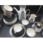 Servīze "Marianna" ar melnu tautīsku dekolu 6 personām, Porcelāns, Rīgas porcelāna rūpnīca, Rīga