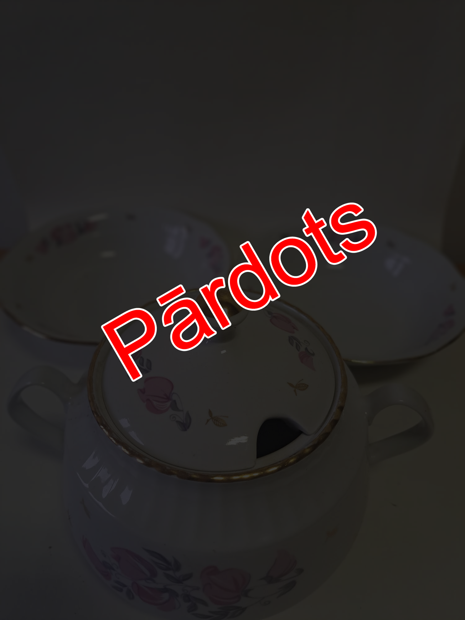 Eleganta un klasiska porcelāna terīne no servīzes “Māra”. Dekorēta ar smalku puķuzirņu ziedu rakstu maigās, romantiskās krāsās. Ideāli piemērota svētku galdam vai ikdienas lietošanai, piešķirot maltītei īpašu noskaņu. Kvalitatīvs Latvijas porcelāns ar tradicionālu dizainu un izsmalcinātu apdari.